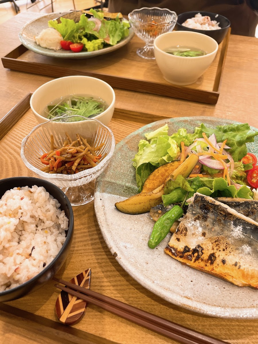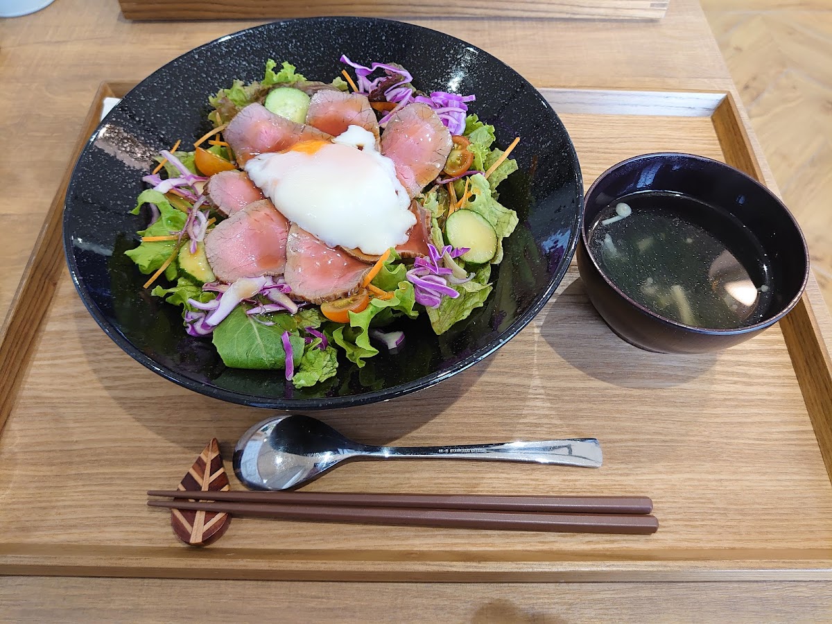 The cafe boasts a diverse menu that is a testament to its commitment to serving delectable vegetarian fare. Highlights include the highly recommended 塩焼き鯖のランチプレート (Salt Grilled Mackerel Lunch Plate), featuring a wholesome bed of multigrain rice, offering a filling yet healthy option that's rich in flavor and nutrition. For meat lovers, the 1日限定5食のローストビーフ丼 (Limited 5 servings of Roast Beef Bowl) delivers a hearty meal bursting with fresh vegetables and succulent meat that leaves your taste buds dancing.